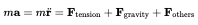 식 1과 더불어, 계에 작용하는 총합의 힘이 그 복잡한 가속도를 정확히 만들어 낼 수 있음을 설명하려면, 구슬이 고리를 벗어나지 않도록 하는 구속 반응력(Constraint Reaction Force. N(t)) 까지 고려되어야 한다.