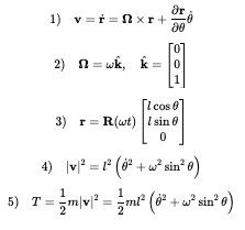 고리 위를 질량이 m 인 작은 구슬이 마찰 없이 움직인다고 하면, 구슬의 위치는 편각 θ(t) 로 표현된다. 이 때, 구슬의 공간 좌표는 회전 좌표계(Fig1) 보다 관성계에서 기술하는 것이 더 복잡하며, 뉴턴 역학을 적용하면 수식 전개 과정이 더욱 복잡해진다.